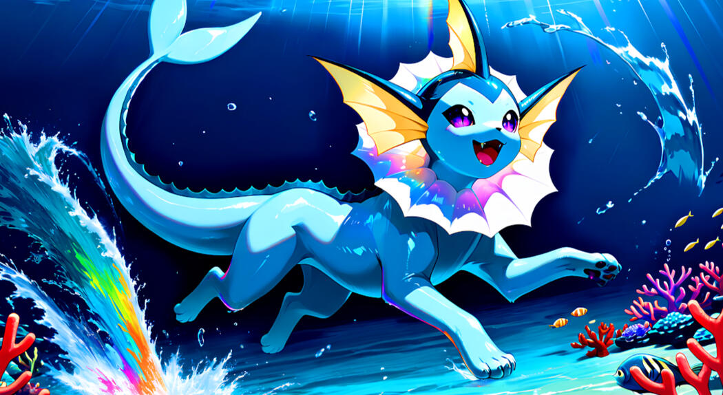 Neneo is an adventurous and independent Vaporeon with a passion for exploring the world around her. Her insatiable curiosity drives her to seek out new experiences and knowledge, constantly pushing the boundaries of her comfort zone. This thirst for adventure sometimes leads Neneo to be reckless in her pursuit of excitement; although she tries hes best, she has a habit of endangering others with careless thrill-seeking.In addition to being curious, Neneo is also compassionate at heart. She genuinely cares about making a positive impact on the lives of those around her and actively seeks ways to help. Again, this habit often backfires, and she can be invasive, demanding, and even hurtful in her pursuit of "helpfulness." There are times when Neneo's strong convictions can lead her down an intractable path, stubbornly clinging to her beliefs even when faced with evidence that contradicts them.In her free time, Neneo enjoys swimming and cloud-gazing. She also has a soft spot for human food, the hotter the better, especially soups and curries.She strongly objects to plastic pollution and won't hesitate to bite anyone she finds leaving trash in natural areas. She also loathes being hungry, and is always snacking on something. She finds small spaces constricting and detests being isolated from others.